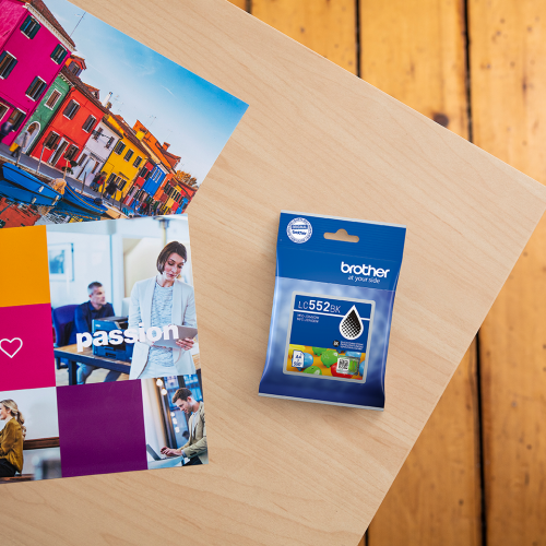 Originálna čierna atramentová kazeta Brother LC552BK v samostatnom balení je určená na spoľahlivú každodennú tlač. Ponúka výťažnosť až 550 strán podľa normy ISO/IEC 24711.